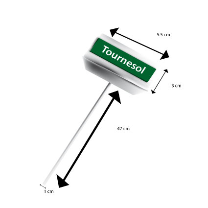 Piquet de Plante Le piquet et la plaque sont vendus séparément. Votre plaque peut être plus grande ou plus petite que la largeur du Piquet. Support de la plaque : 5.5 x 3 cm Piquet : 47 cm de long x 1 cm de large x 0.6 d'épaisseur